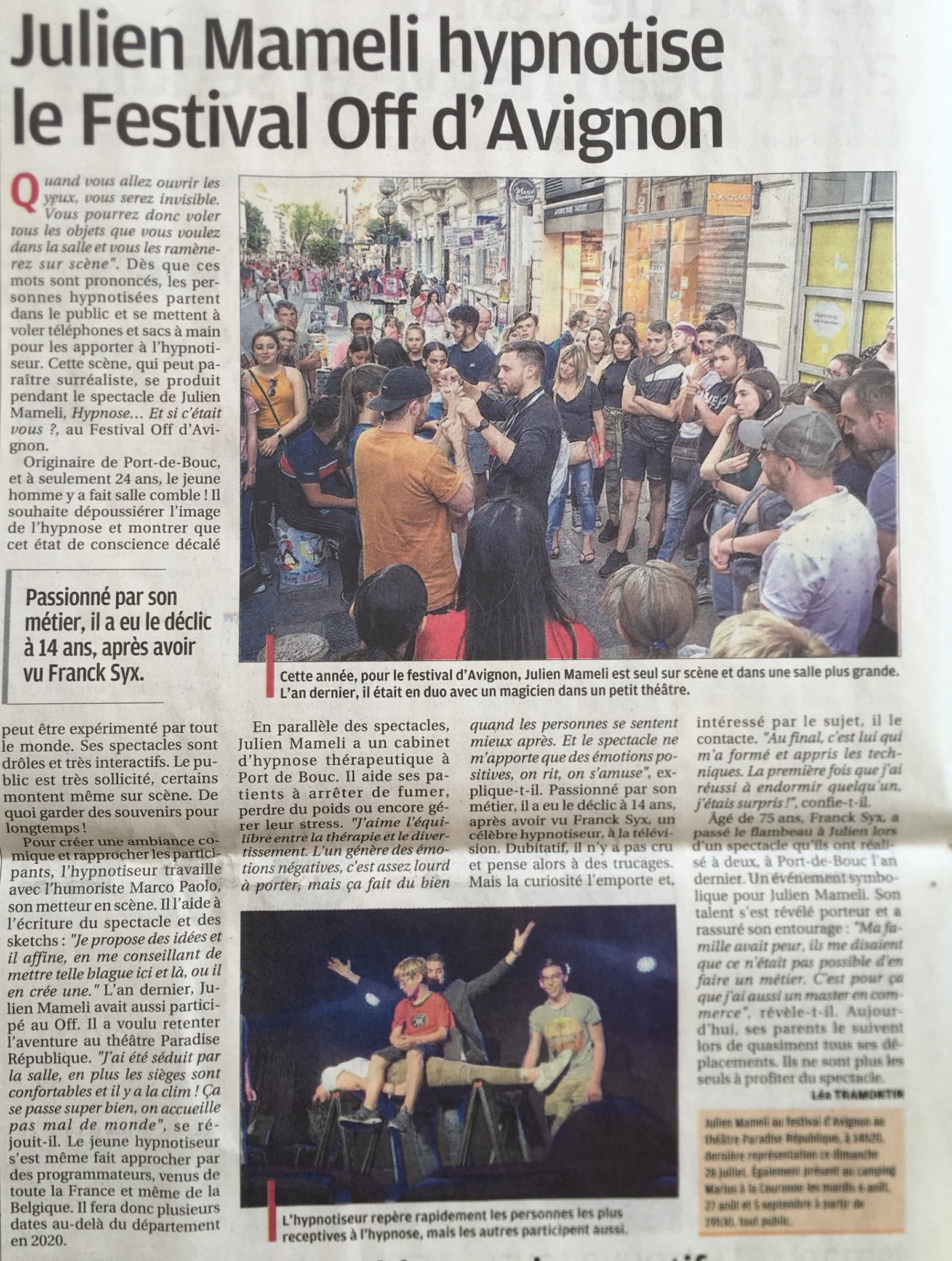 Julien MAMELI fait son One Man Show d'Hypnose